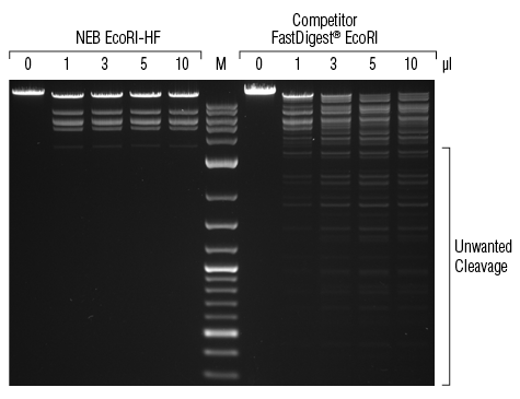 For over 40 years, New England Biolabs has been developing innovative solutions for molecular biology applications. The respected leader in the field of restriction enzyme biology, NEB has developed a line of High-Fidelity (HF®) Restriction Enzymes. These engineered enzymes have the same specificity as the native enzyme, with the added benefit of reduced star activity, rapid digestion (5-15 minutes) and 100% activity in CutSmart® Buffer.