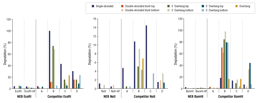 NEB extensively quality controls its popular lines of standard and high-fidelity (HF®) restriction enzymes. Each new lot is tested and must meet the specifications designated for the product. Quality controls for restriction enzymes, both standard and HF, include: