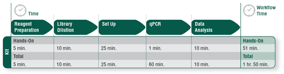 The determination of the number of sequencing-ready molecules present after library preparation is an important step in the next generation sequencing (NGS) workflow and has a strong influence on the success of a sequencing run. qPCR is considered to be the most accurate and effective method of library quantitation, providing considerably higher consistency and reproducibility of quantitation. The qPCR-based NEBNext® Library Quant Kit quantitates only those molecules that contain both adaptor sequences, thereby providing a more accurate estimate of the concentration of the library molecules that can be sequenced.
